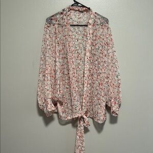 Pilcro Pink and White Tie Front Cuffed Sleeve wrap