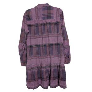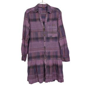 Anthropologie Pilcro Womens Lavender Purple Plaid Tangier Long Sleeve Mini Shirt Dress Size Large