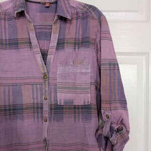 Pilcro Plaid Tangier Mini Shirt Dress Womens Size Large Purple Long Sleeve