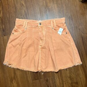 Pilcro Pleated Peach Orange Denim Mini Skirt Raw Hem Women’s Size 8 NWT