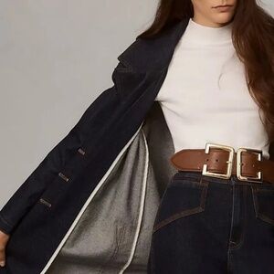 Pilcro Polished Denim Trench Coat Jean Jacket Longline Anthropologie NWOT Medium