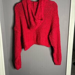 Pilcro Red Open Knit Cropped Hooded Sweater Size XS