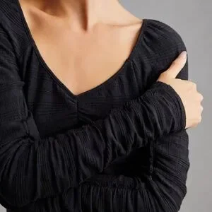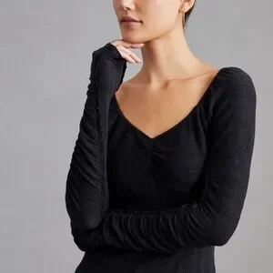 Pilcro Ribbed Ruched-Sleeve Top