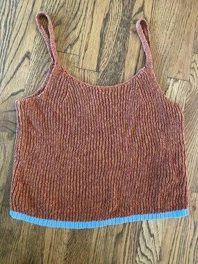 Pilcro ribbed knit spaghetti strap top. Warm rust-brown tone with textured stitch. Easy to layer or wear alone.