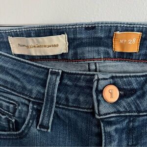 Pilcro and the Letterpress Stet mid-rise flare jeans. Women’s size 28. Dark wash stretch denim. I’m typically a 27 and these fit pretty snug on me. They’re in great gently used condition - a little wear on the metal buttons but otherwise no flaws to note.