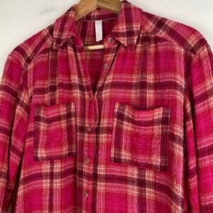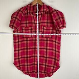 Pilcro Seamed Buttondown Size XS Pink Burgundy Plaid Tunic Top Blouse 70s Casual