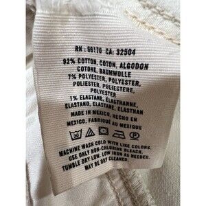 The Pilcro Serif Skinny Ankle Zip Moto Jeans Pants in Ivory by Anthropologie are a stylish and versatile addition to any woman's wardrobe. Made from a blend of cotton, polyester, and elastane, these jeans feature a front zip with button closure and tonal stitch panels for added detail. The skinny fit from hip through ankle gives a modern and flattering silhouette, while the ankle zip adds a unique touch to the design. Perfect for everyday wear, these machine washable pants are both comfortable and chic, making them a must-have for any fashion-forward woman. 32 inch waist, 9 inch rise and 29 inch inseam. Smoke free home.