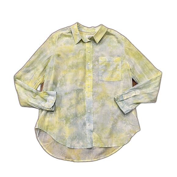 Anthropologie Pilcro Shirt Womens Large Top Yellow Green Button Up Semi Sheer