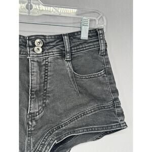 Pilcro Shorts Womens 25 Black Gray Denim MidRise Curved Hem Retro Daisy Dukes