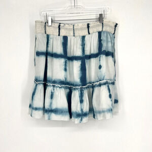 Pilcro Skirt Womens L Boho Ruffle Tie Dye Blue White Peasant Feminine Smocked