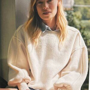 Pilcro Slouchy Crew-Neck Sweatshirt in Ivory Size XL