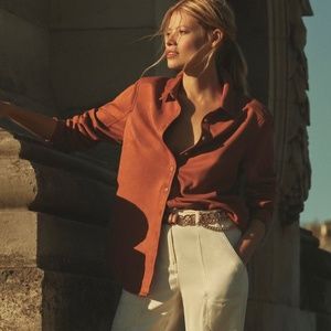 Pilcro Suede Button Down - Cedar / Size Small