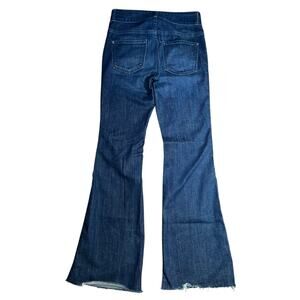 Pilcro Superscript Flared Jeans Raw Hem Mid Rise Dark Wash