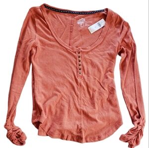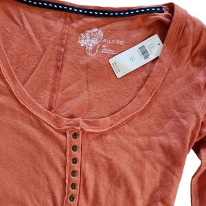 Pilcro Sustainable Linen Blend Henley Top NEW