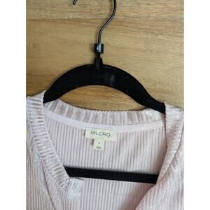 Pilcro Sweater Womens S Pink Silver Metallic Long Sleeve Crew Neck Button Front.
