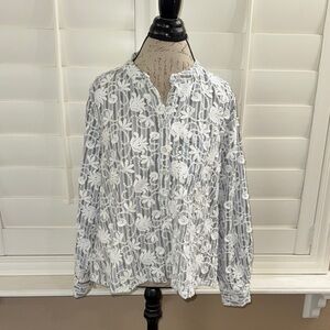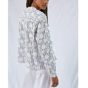 Pilcro THE WHITNEY TRAPEZE STRIPED FLORAL BUTTON Top IVORY