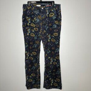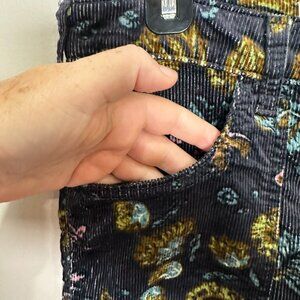 Pilcro The Icon Low Rise Flare Corduroy Pants Floral Black Size 30 Boho Retro