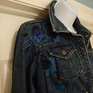 Pilcro & The Letterpress Beaded Embroidered Blingy Jean Denim Jacket XS