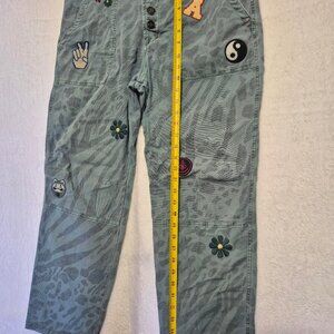 Anthropologie jeans, Pilcro Wanderer, Y2K jeans, embroidered patch jeans, festival pants, boho hippie denim, retro streetwear, cottagecore, vintage-inspired jeans, unique denim