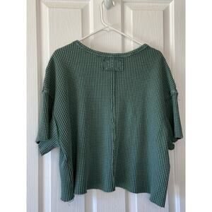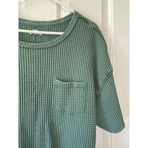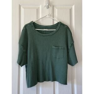 Pilcro Urban Outfitters Green Waffle Raw Hem Oversized Pocket Tee Shirt Small
