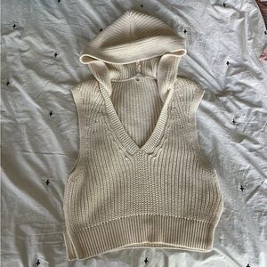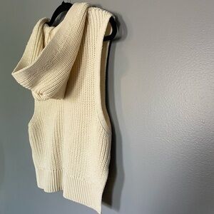 Pilcro V-Neck Hooded Sweater Vest Knit Cream sz XXS