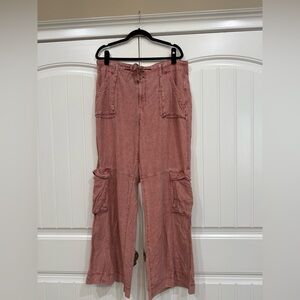 Stylish wide leg pants by Pilcro. Features a drawstring waist and cargo pockets. Perfect for casual outings.