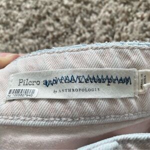 Pilcro and the Letterpress Anthropologie acid wash jeans. White jeans, but have a pink/blue tint. There are some stains on front leg. Priced accordingly. See pics for approximate measurements.