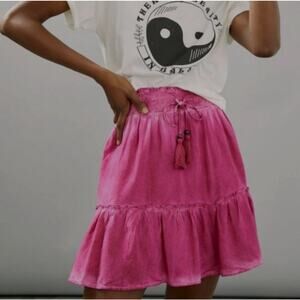 Pilcro Women’s Mini Skirt Pink Boho Ruffled Elastic Draw String Anthropologie