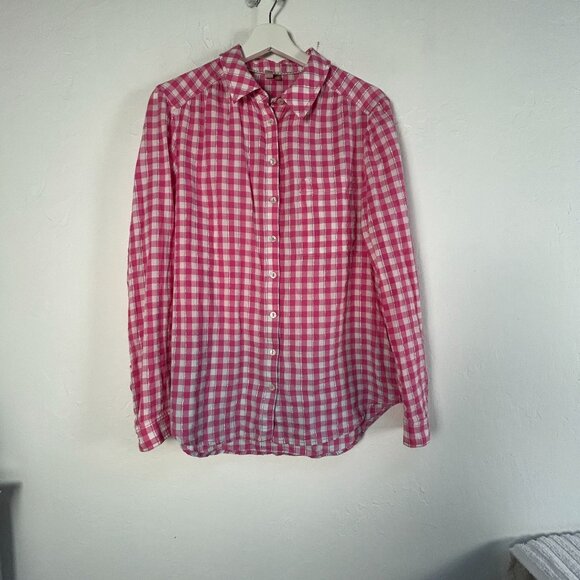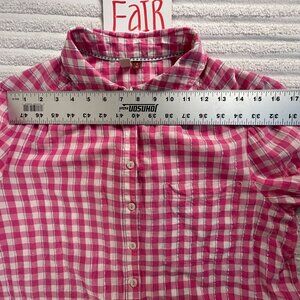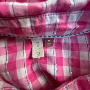 Pilcro Womens Pink & White Gingham Plaid Button-Up Shirt Medium Long Sleeve Top