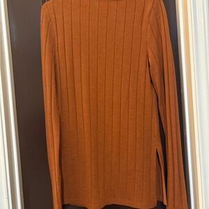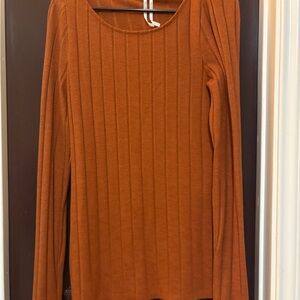 Chic ribbed sweater in a warm rust hue. Perfect for layering and versatile styling.