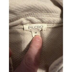 This Pilcro sweater is a must-have for any woman's wardrobe! The beige color and solid pattern make it versatile for any occasion. The grommet detail adds a unique touch to the split neck design. Made from cotton, it's comfortable and perfect for everyday wear. The long sleeves and pullover style make it easy to wear and the XS size is perfect for those who want a snug fit. This sweater is from the Letterpress Anthropologie collection and is a great addition to any outfit.