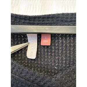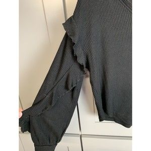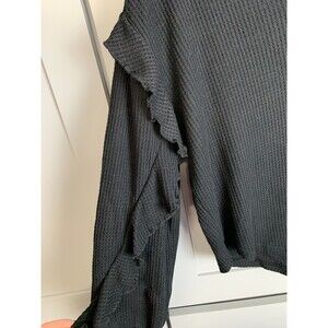 Pilcro Womens Sweater Large Black Ruffle Arms Waffle Knit Bohemian V Neck Boho