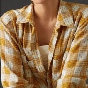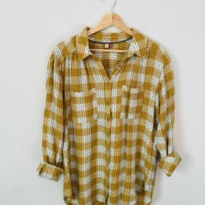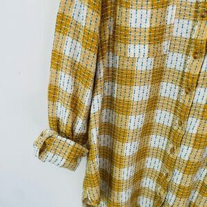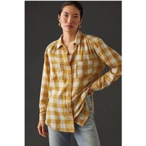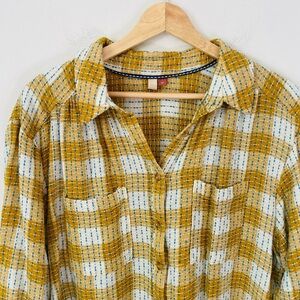 Pilcro Yellow and Blue Boxy Button Down Shirt