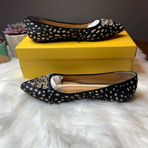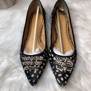 Beautiful Anthropologie flats from Pilcro and The Letter Press. Black and white patterned. Some wear on shoes, as noted in pictures. Some wear on soles. These shoes have been taken care of, and are ready for a new home.