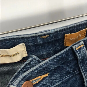 Slightly distressed and worn In. Super soft. Size 28. Waist is 15.5 across. Rise 8. Inseam 28.