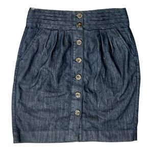 Pilcro and the Letterpress Blue Dark Wash Mini Button Front Jean Denim Skirt 6