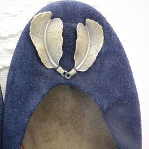 Pilcro and the Letterpress Blue Suede Leather Gold Feathers Ballet Flats Sz 8