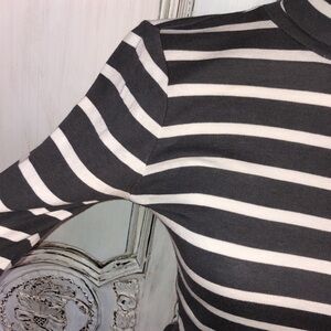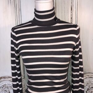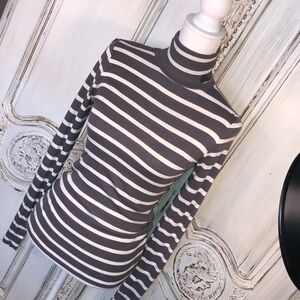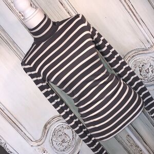 Pilcro and the Letterpress Classic Gray and Cream Stripes Roll Turtleneck Top