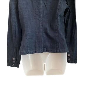 Stylish dark blue blazer. Features button closure. Perfect for formal occasions.