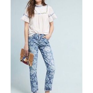 Pilcro and the Letterpress floral printed jeans. Slim boyfriend style.