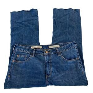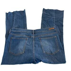 In good used condition! No holes or stains. Women’s size 31 petite. High waisted. Flare cropped jeans. 25.5 inch inseam. Raw hem. Zipper fly.