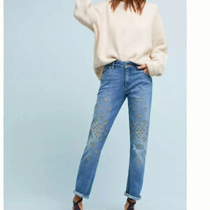 Pilcro and the Letterpress High-Rise Relaxed Straight Embellished Jeans Size 26