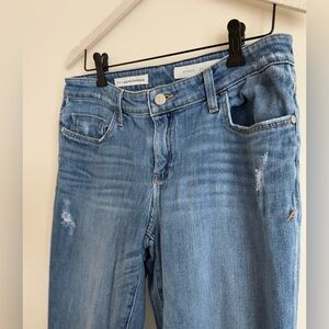 A great pair of everyday jeans! These Pilcro Hyphen jeans are a classic medium wash with a flattering mid-rise fit. Super comfy with just a bit of stretch (98% cotton, 2% polyurethane), they have a laid-back, slightly lived-in vibe with minor distressing.