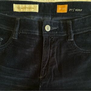 Pilcro and the Letterpress Navy velvet skinny pants, size 30