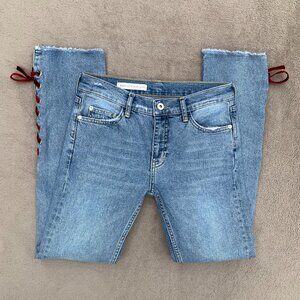 Pilcro and the Letterpress Side Velvet Lace Up Mid Rise Straight Leg Jeans Sz 26