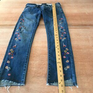 Pilcro and the Letterpress Slim Straight Crop Jeans Women 24P Blue Embroidered 17832