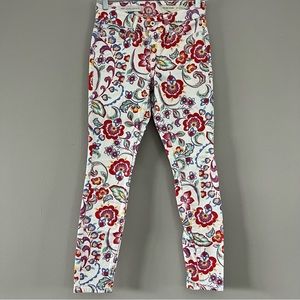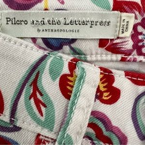 Pilcro and the Letterpress by Antrhopologie Mid-Rise Skinny Floral Print Jeans. Button closure, zip fly. 5 pocket design. 98% cotton, 2% spandex. Machine wash cold or dry clean, Clean interior, very good condition, Appx. measurements with garment laying flat:
