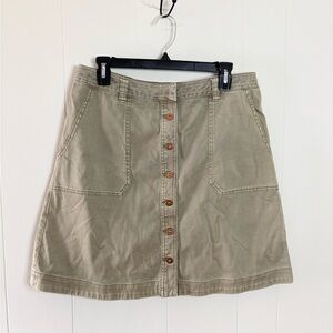Pilcro and the Letterpress khaki button front a line skirt size 10