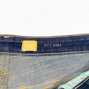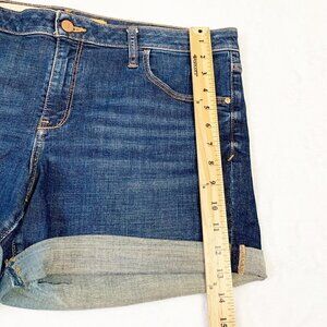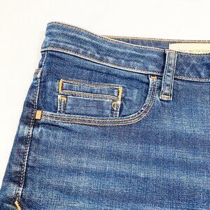 Pilcro and the Letterpress stretch mid-rise stet fit dark wash denim jean shorts
