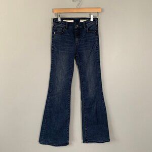 Pilcro and the letterpress dark wash high-rise bootcut stretch denim jeans